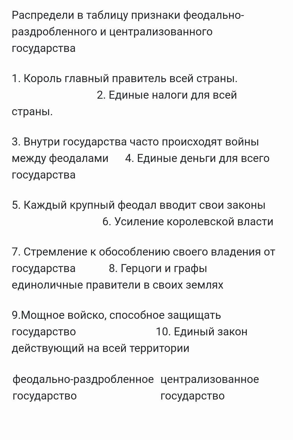 Централизованное государство - 1, 2, 4, 6, 9, 10