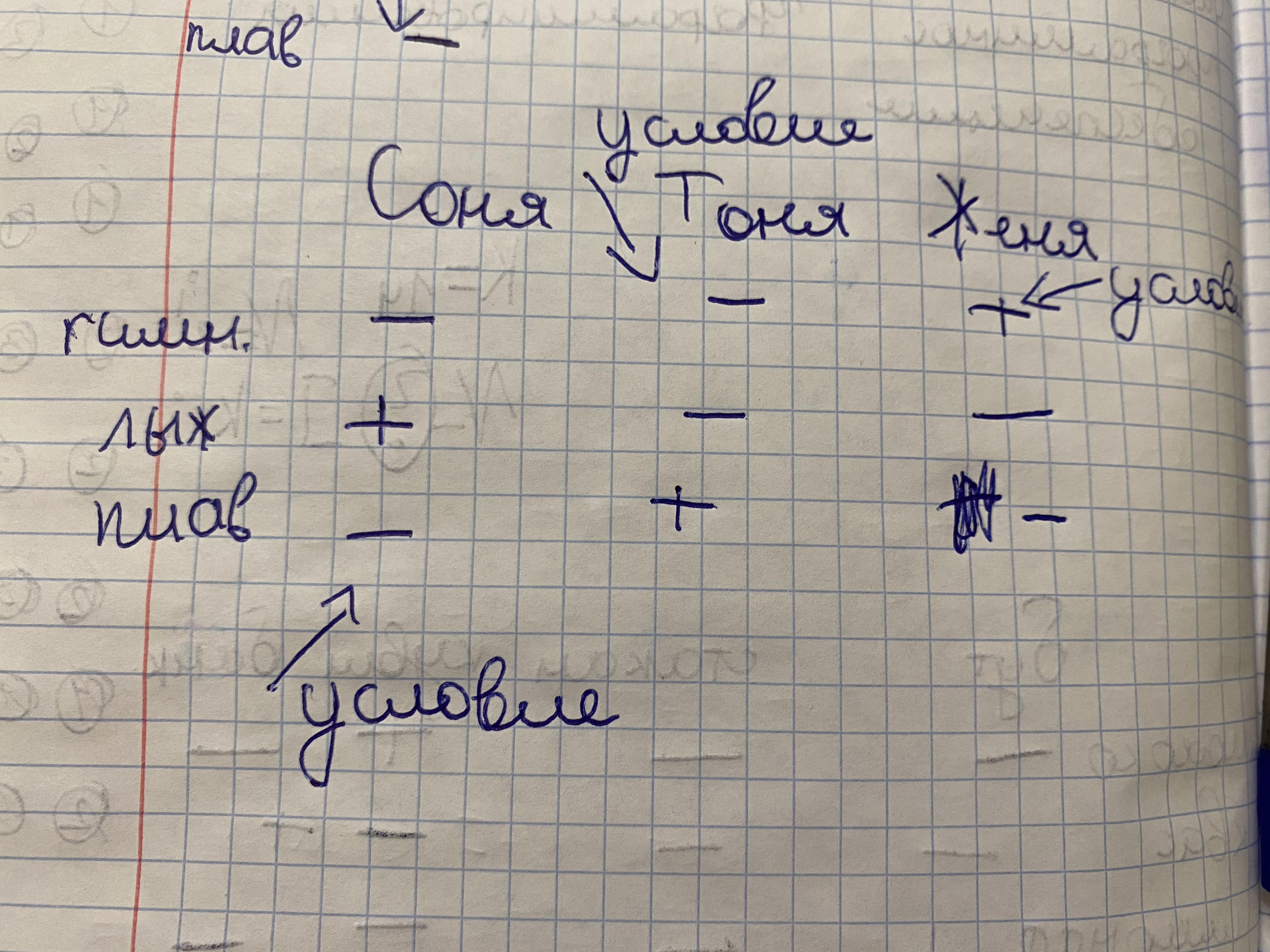 Соня - лыж Тоня - плавательная Женя - гимнастическая