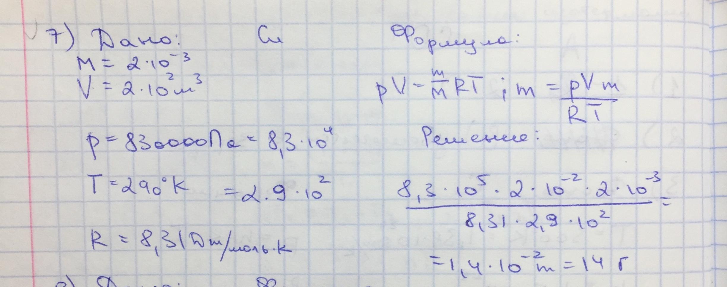 Определите количество водорода, находящегося в баллоне вместимостью 2·10-2 м3 при давлении 830000 Па, если температура его равна 290 °К. R= 8,31 Дж/моль·°К.