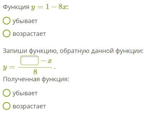 x=1-8y, 8y=1-x, y=(1-x)/8 -убывает( обратная)