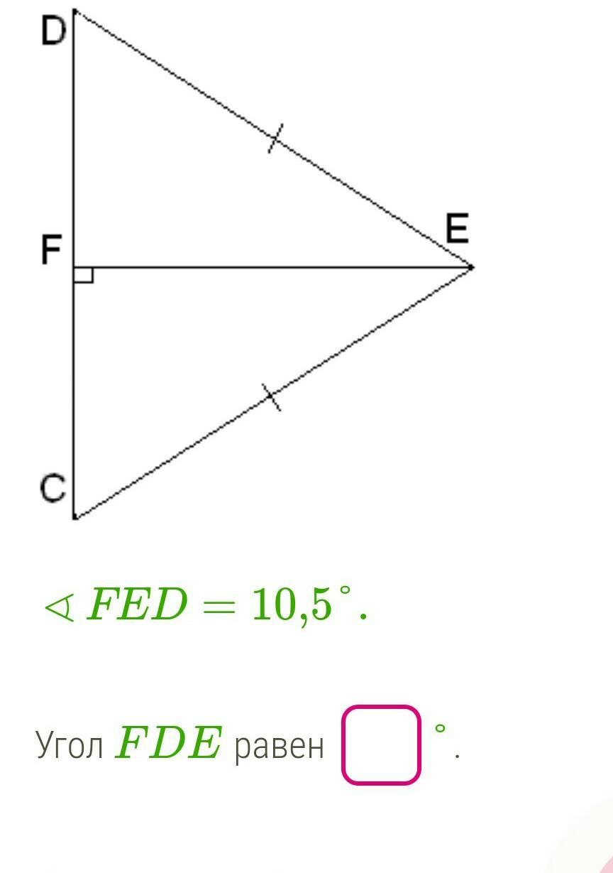 Решение : ΔFDE- прямоугольный (в прямоугольном треугольнике один из углов равен 90°, соответственно два других угла дают в сумме тоже 90°)
