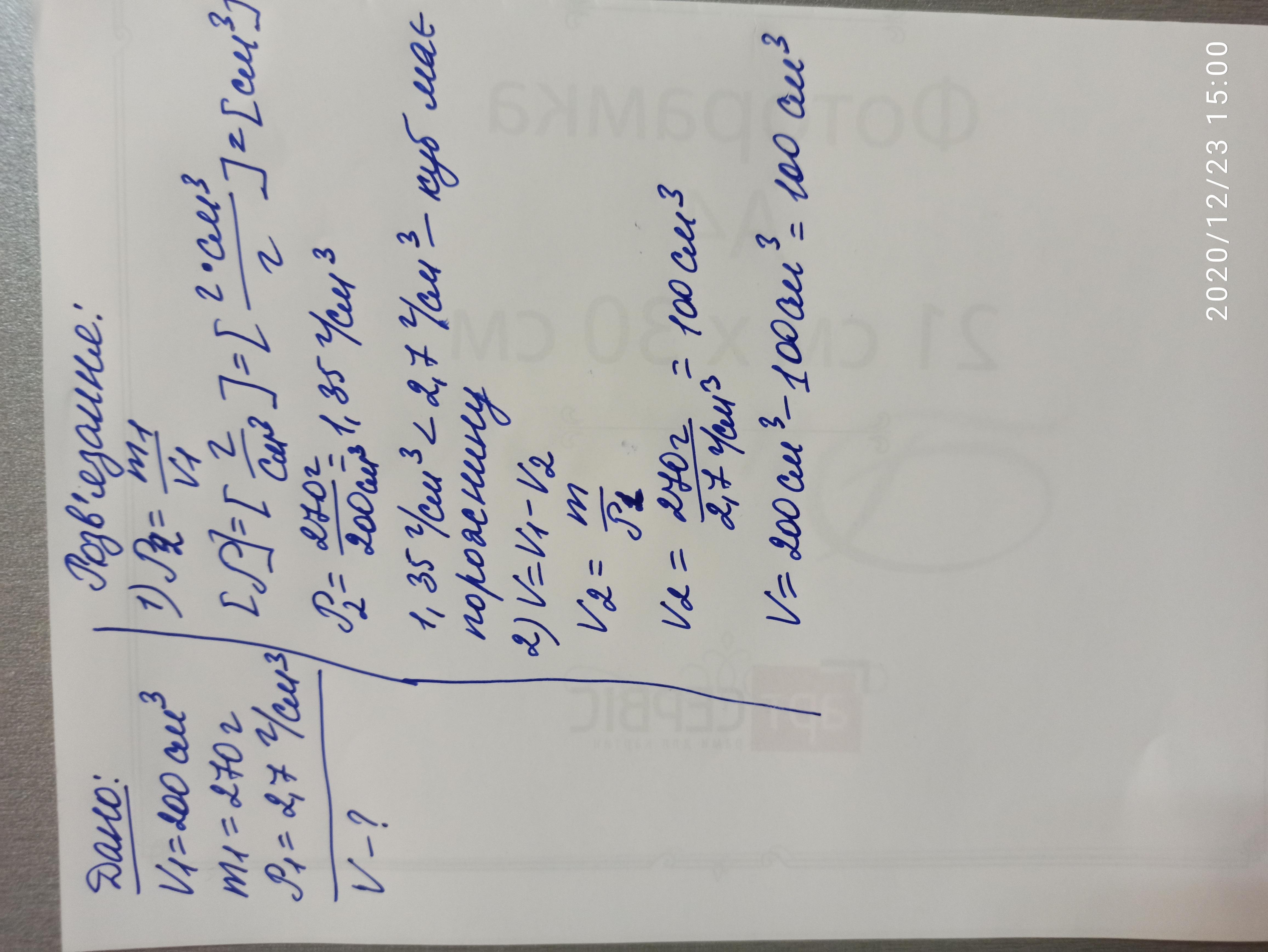 Маса алюмінієвого куба об'ємом 200 см дорівнює 270 г. Чи має