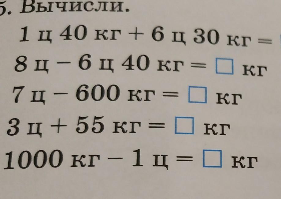 - 7ц 70кг, 770кг 2.1ц 60кг, 160кг 3. 1ц, 100кг 4. 3ц 55кг, 355кг 5. 9ц, 900кг