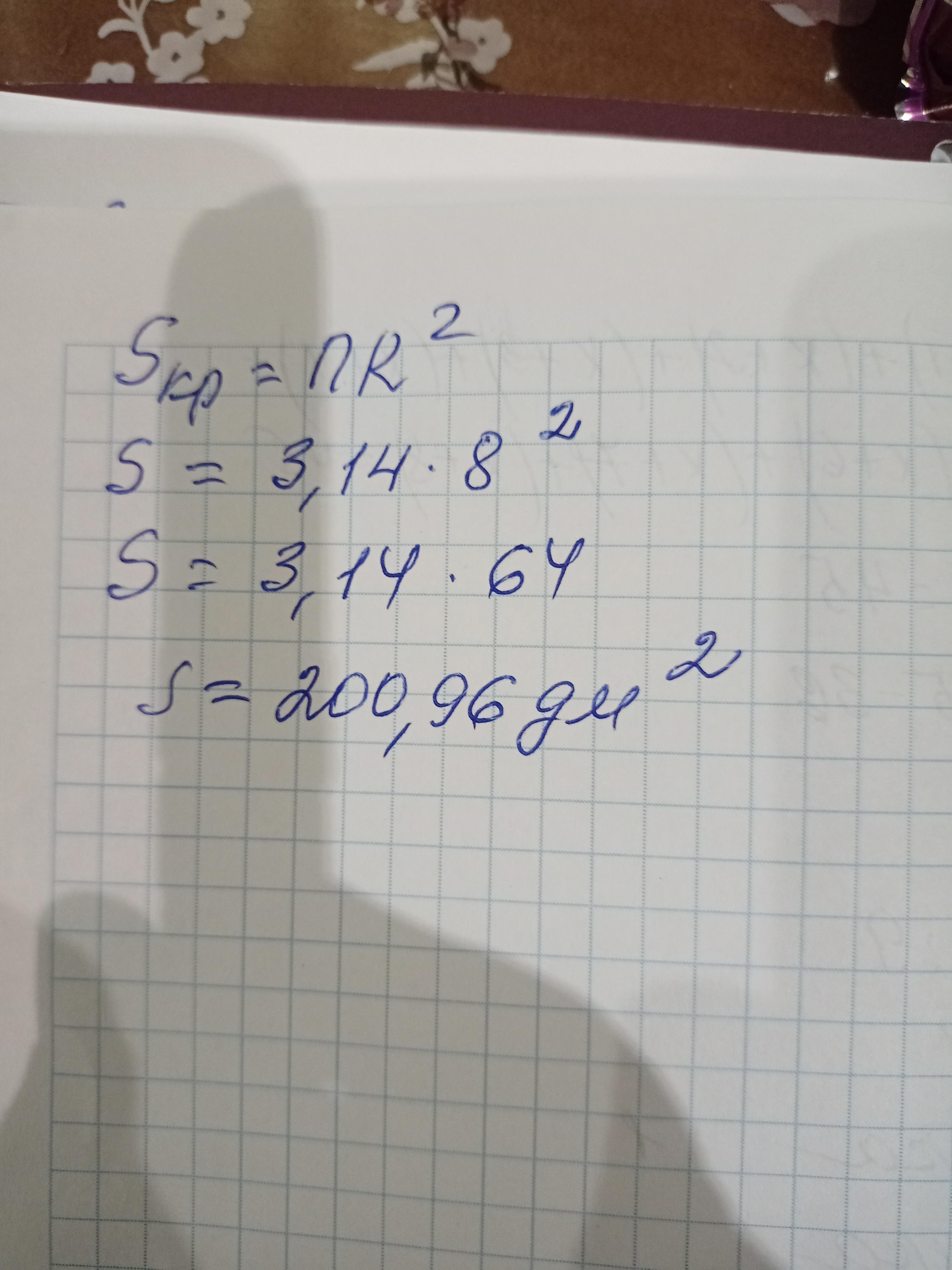 S=3,14*8^2=3,14*64 = 200,96 дм
