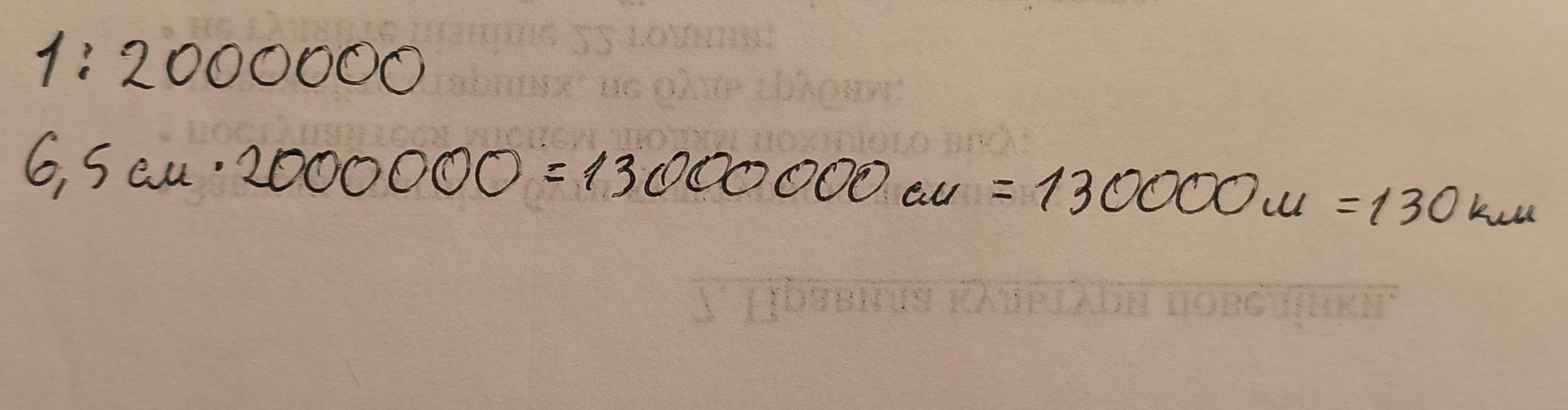 маштаб на карте 1к2000000 растояние на месности 6,5см.Найдите расстояние на месности