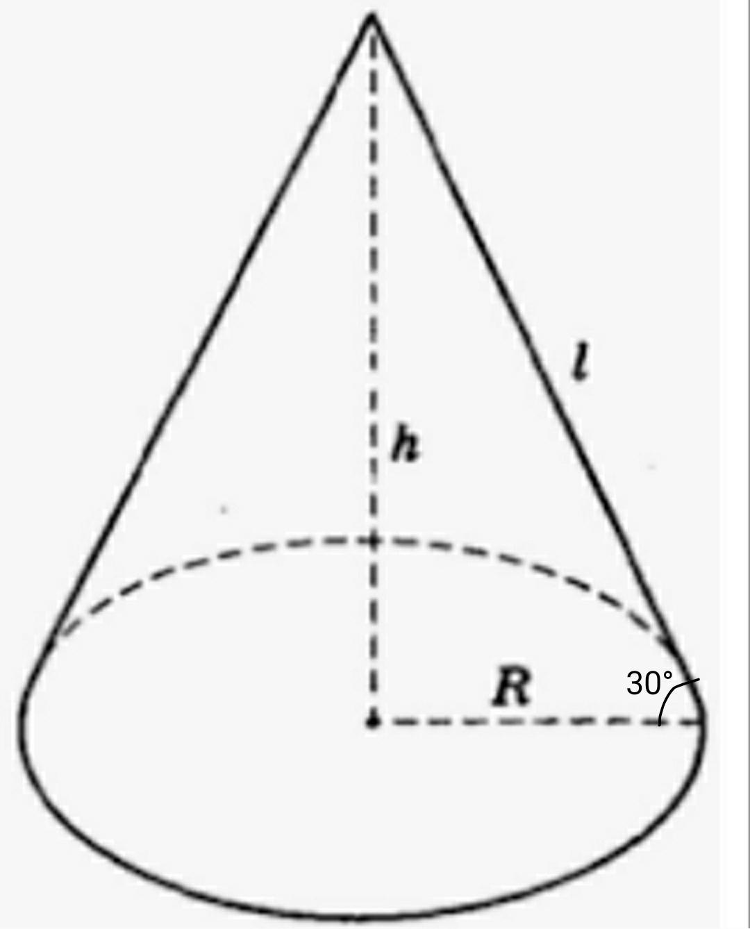 Радіус основи конуса дорівнює 4 см, а твірна утворює з площиною основи кут 30°. Знайдіть: