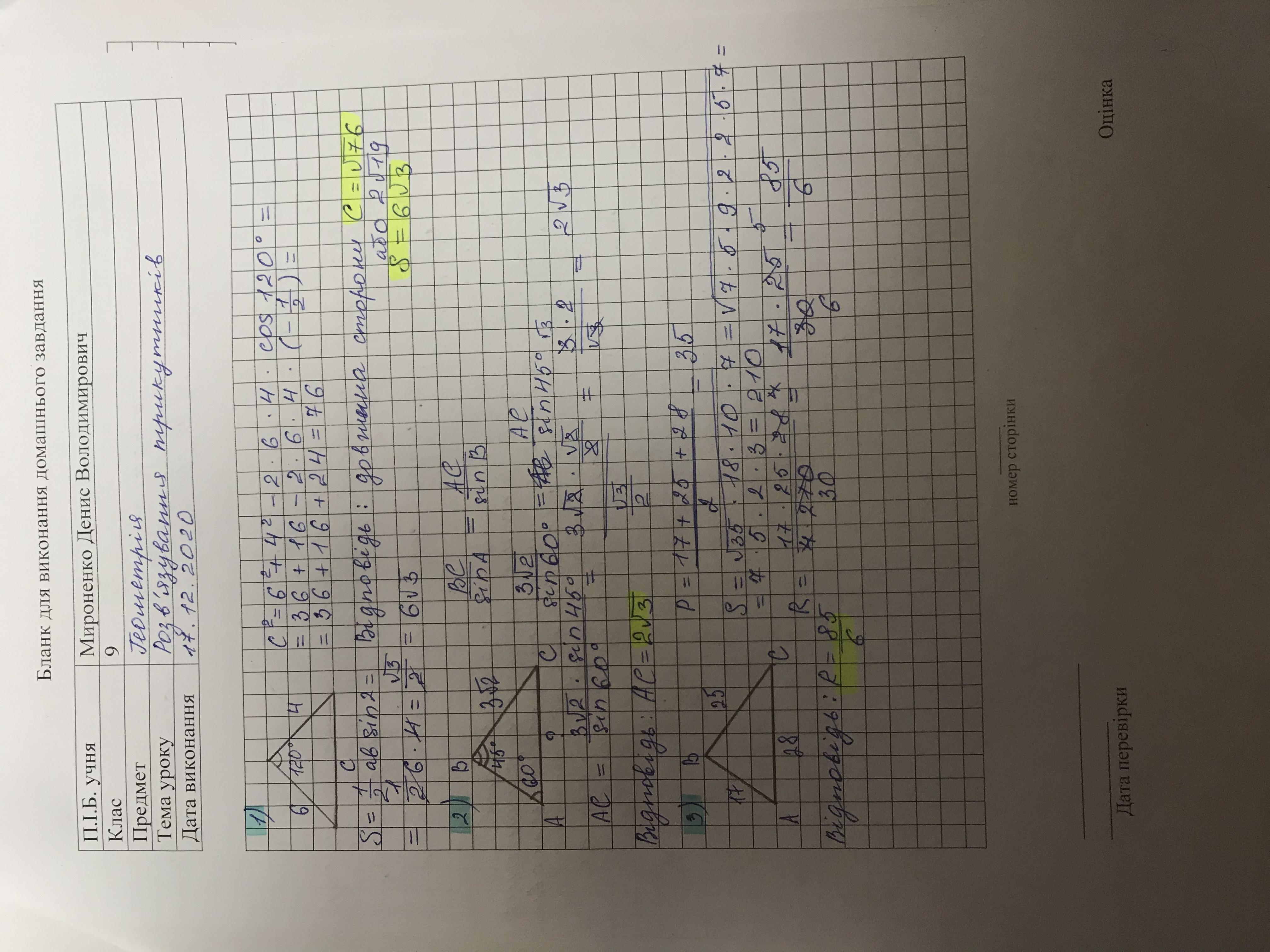 Дві сторони трикутника дорівнюють 4 см і 6 см, а кут між ними - 120°. Знайдіть третю сторону трикутника.