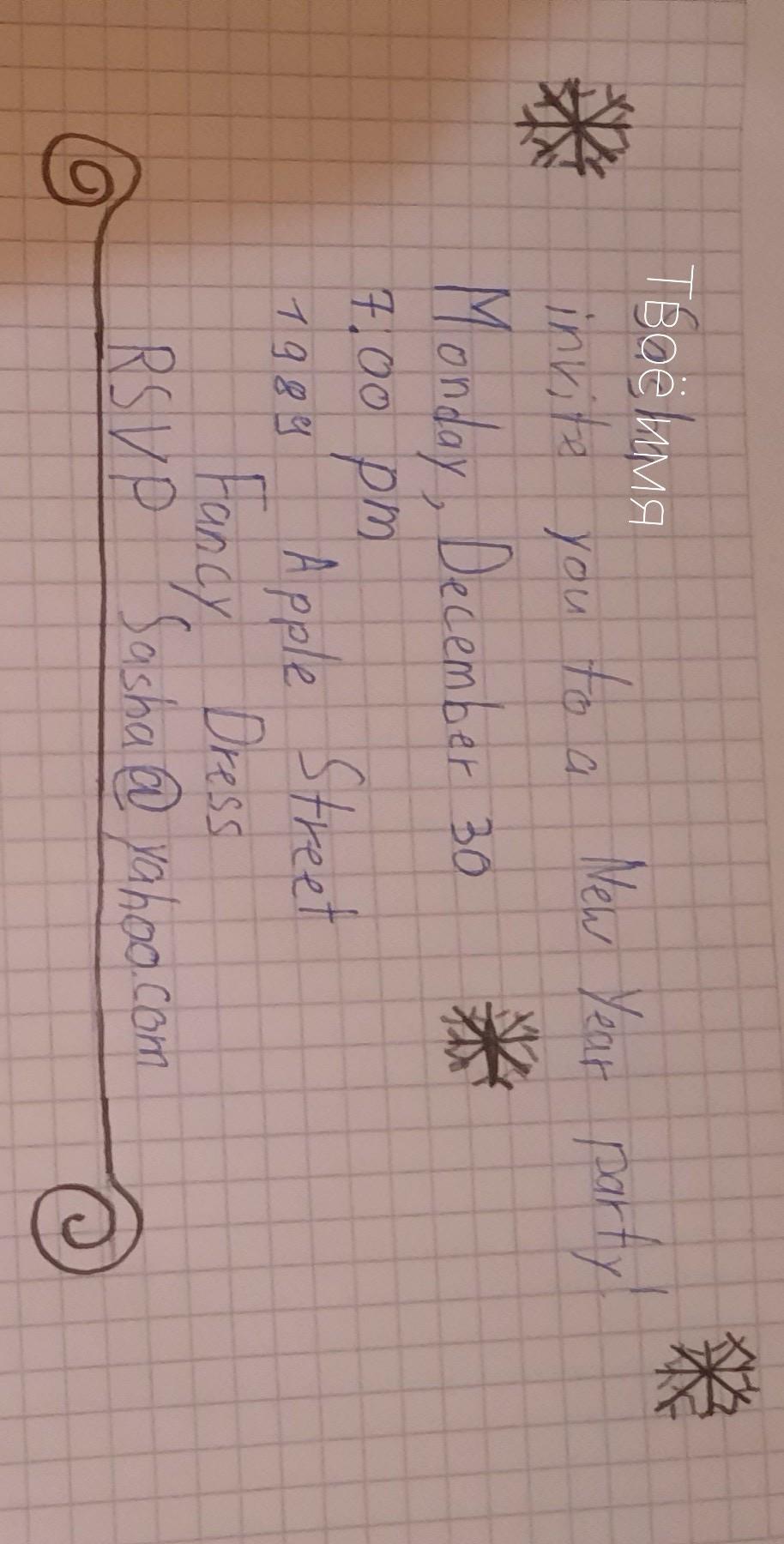 Помогите пожалуйста срочно. По английскому языку надо написать текст про новый год. Я никак не могу придумать как написать и с чего начать.