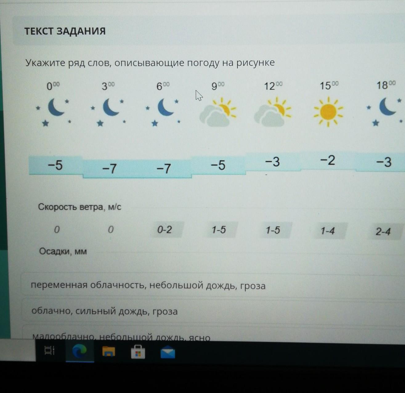 кажется либо. "ясно,сильный ветер,магнитные бури" или же "ясно,облачно,без осадков"