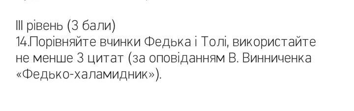 Федько халамидник син бідного робітника друкарні, Толя дитина з з багатої сім'ї. Федько чесний, ніколи не брехав, любив бійки заважав хлопцям спокійно гратися завдавав шкоди сусідам справжній друг, Толя дитина ніжна, делікатна, смирна. Федько по крижина перебрався з одного берега на інший, Толя самостійно не зміг цього зробити йому допоміг Федько, який потім сам упав у воду. Толя злякався не допоміг товаришу а інші друзі прийшли на допомогу федькові. Толя-підлість боягуз, ливість і брехливість, про таких в народі кажуть "лякливий як заєць а шкідливий як кішка" це викликає в мене обурення. Толя пішов гратися з чижиков в той час як на цвинтарі ховали Федька. Федько- справжній друг врятував Толю від смерті та від батьківського покарання.