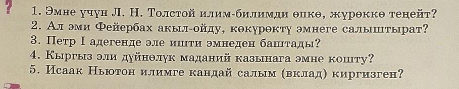 ответить на вопросы ,на кыргызском,снизу текст!! очень прошу мне помочь,те кто знает кыргызский,а кто не знает пожалуйста не пишите что типо я русский,пожалуйста