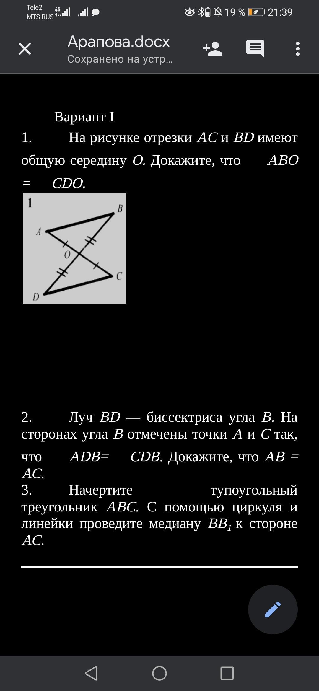 1.по признакам равенства треугольников (2 стороны и общий угол) они равны