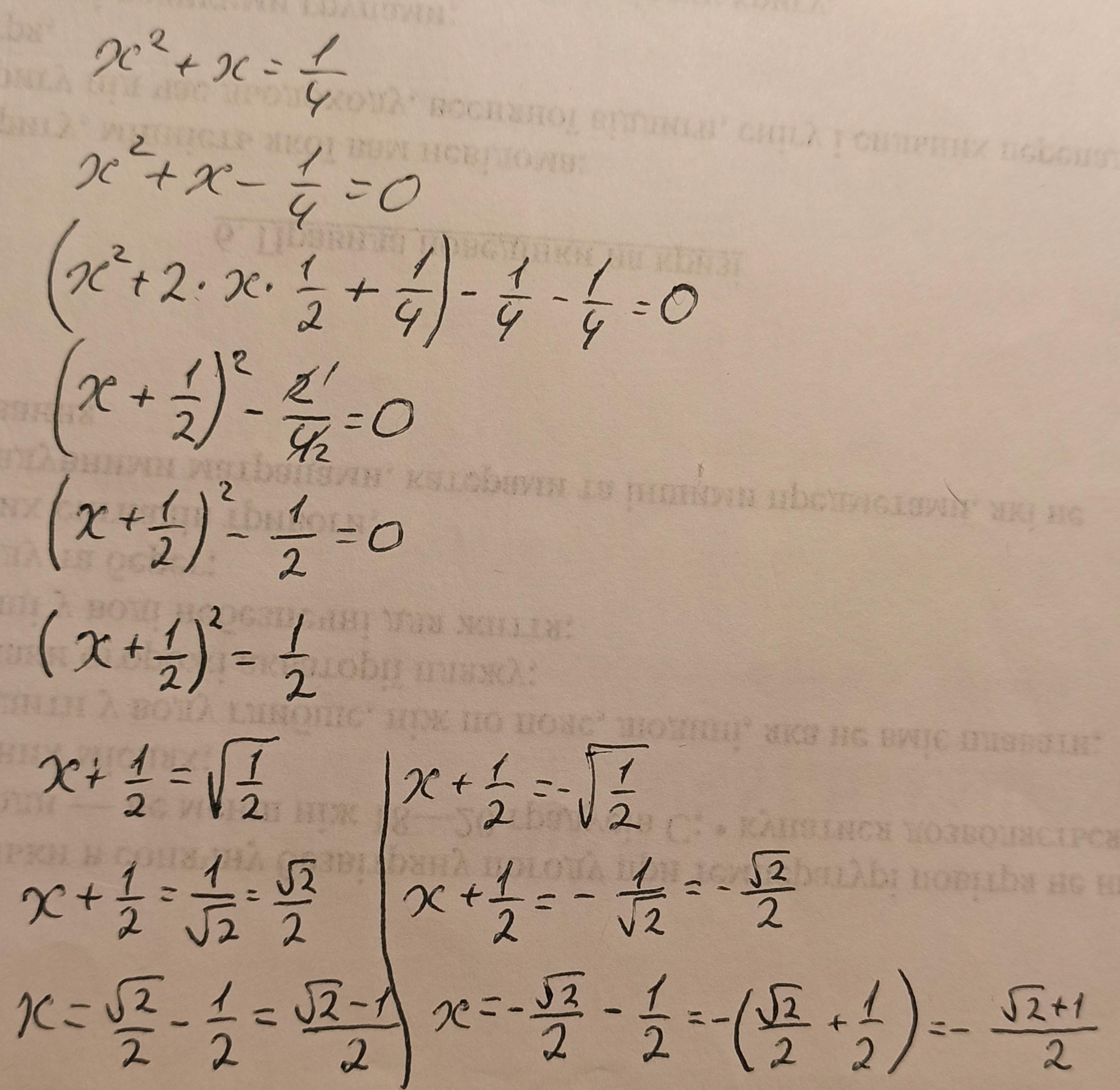 х = (√2 - 1)/2 ; х = -(√2 + 1)/2