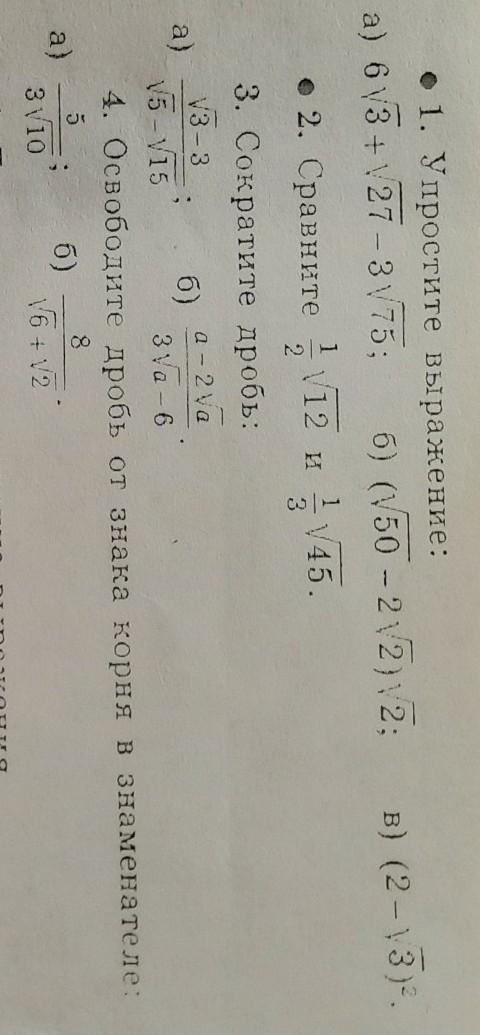 1. а) 6√3 + √27 - 3√75= 6√3 + 3√3 - 15√3 = -6√3