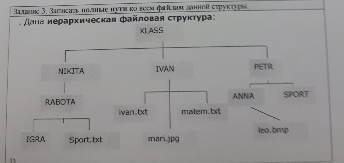 обычно полный путь начинается с имени диска, на котором хранятся файлы. Но в твоем задании имя диска не указано. Но если все таки нужно будет указать имя диска, например, диск D, то просто перед каждым путем укажешь этот диск. Например:
