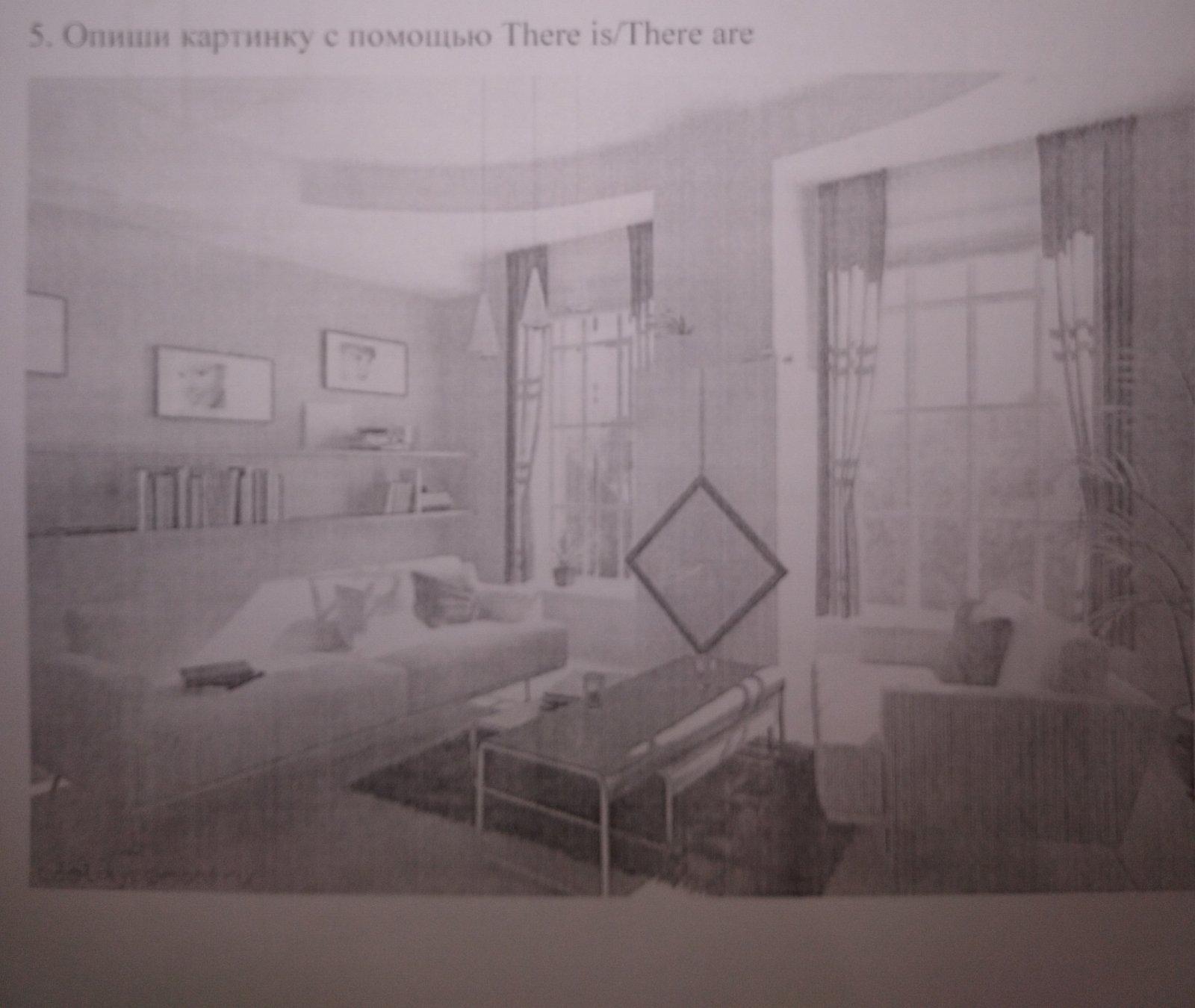 There is a room. There are two glasses on the table in a middle. There is a sofa with some pillows and books on it. There are some pictures and shelves with books on the wall. There are two windows that have a strange thing between. There is a rug under the table. There are two chairs. There is a plant behind them. There are two lamps that hang down from the ceiling.