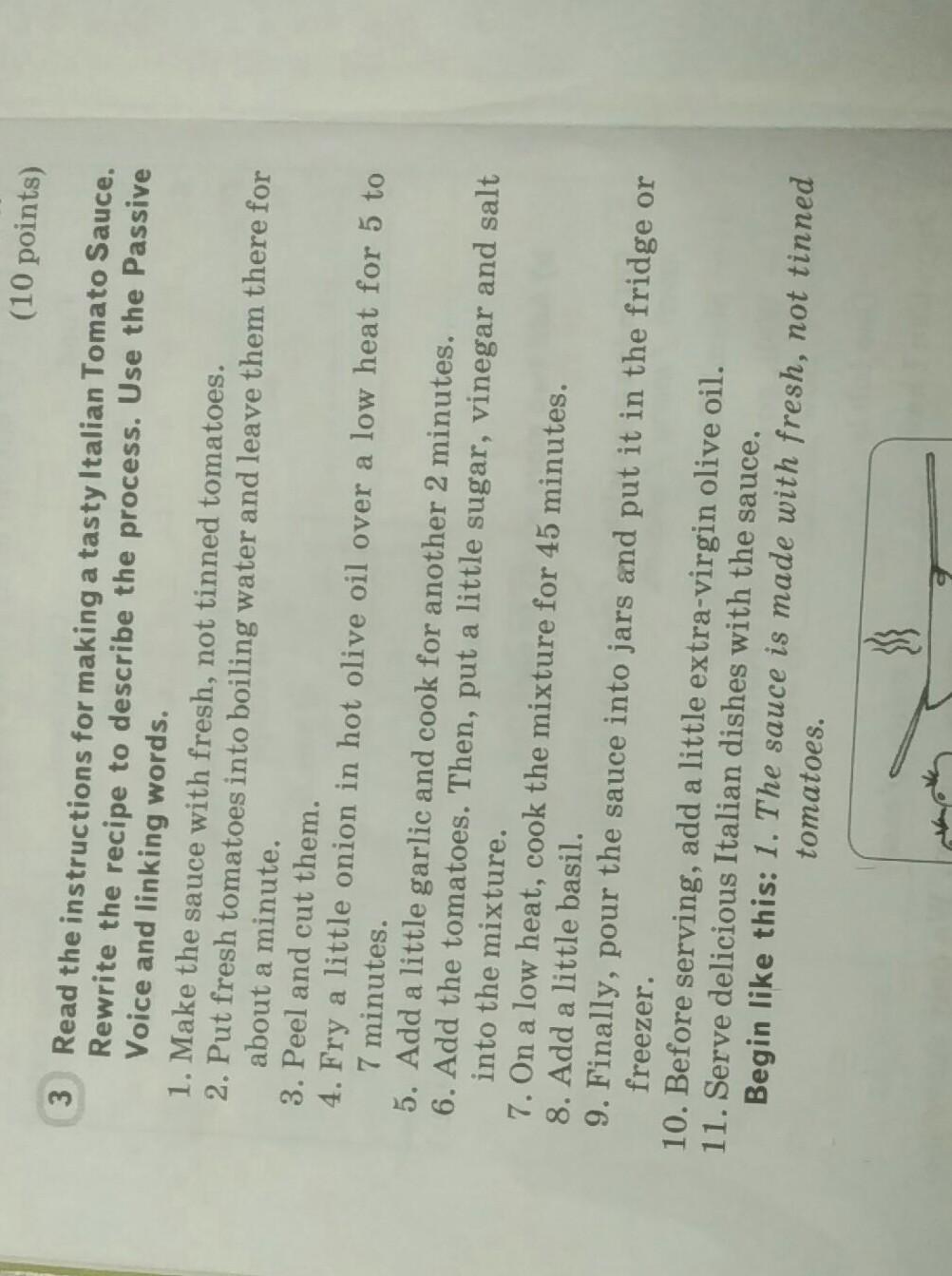 прочитайте инструкцию по приготовлению вкусного томатного нечто.Перепишите рецепт описания процесса.Используй Пассив Войс и свяжи слова.