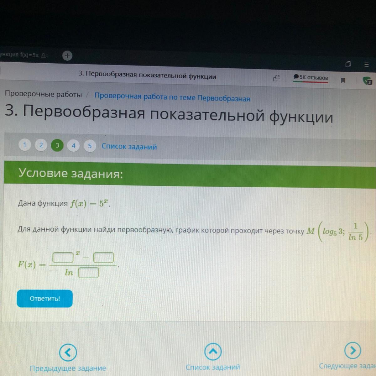 5^log5(3) / ln(5) + C = 1/ln(5)
