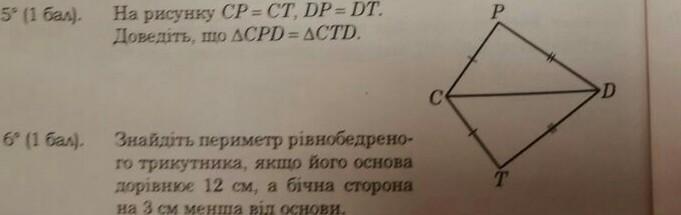 Решение: у этих треугольников одна общая сторона CD и остальные 2 стороны равны. Значит треугольники равны по 3м сторонам.
