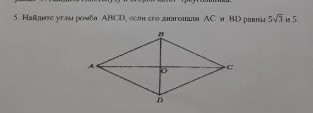 найдите углы ромба abcd если его диагонали ac и bd равны 5√3 и 5