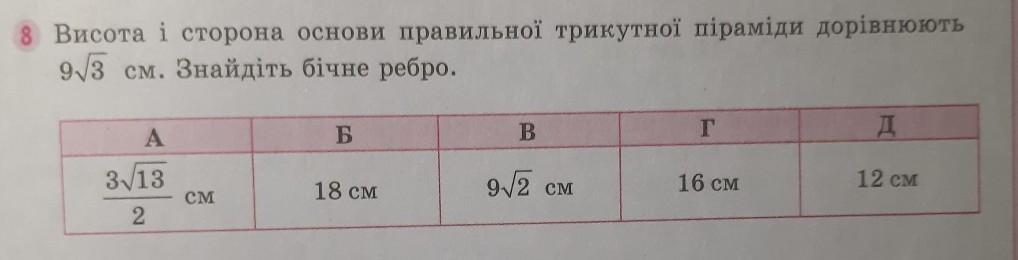 Розглянемо трикутник АОН, він прямокутний, НО=9×sqr(3), а AO=9. АО вираховуємо з трикутника АВС за властивістю медіан , що точка О ділить її 2:1