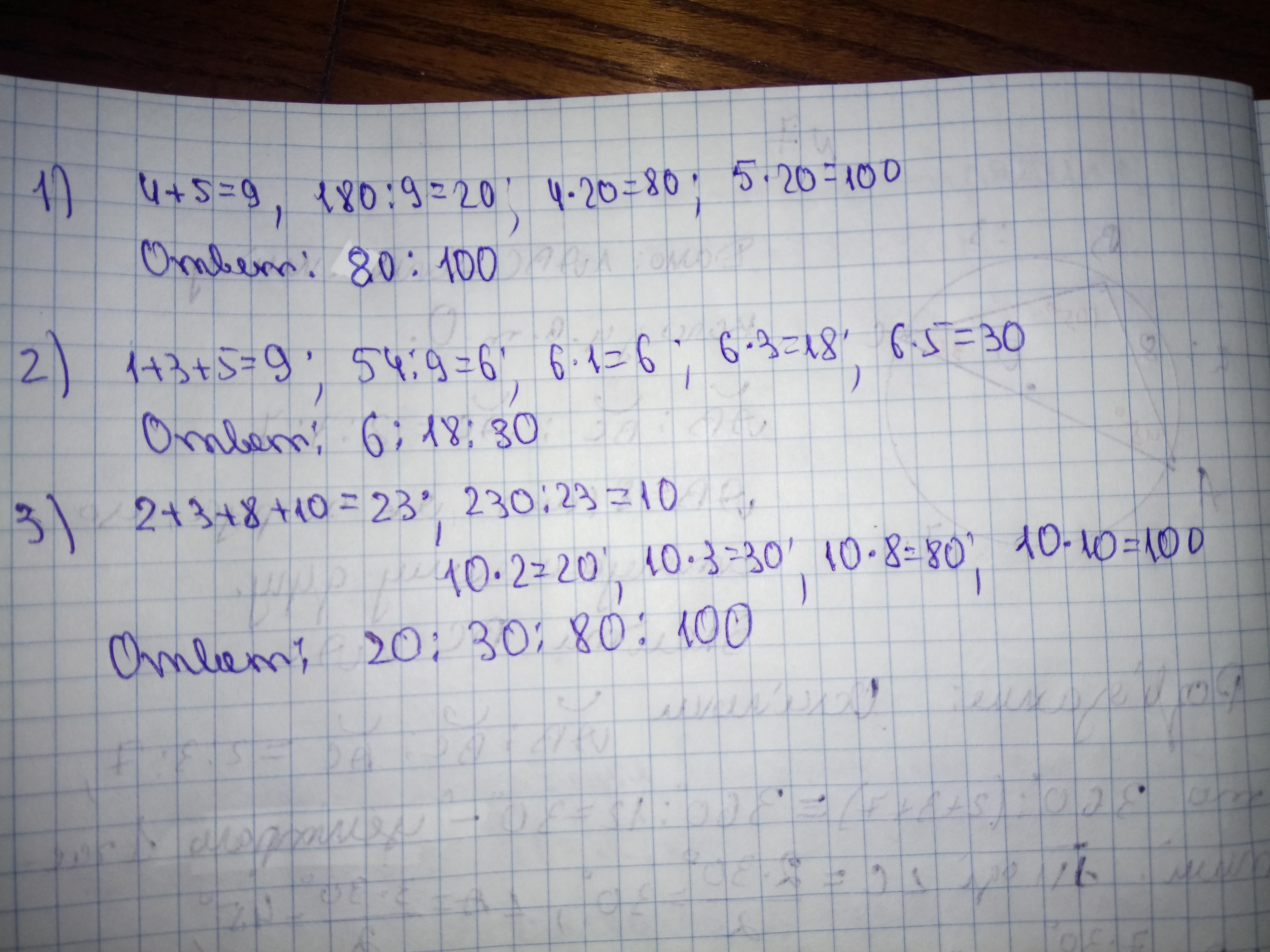 3) число 230 в отношении 2 : 3 : 8 : 10