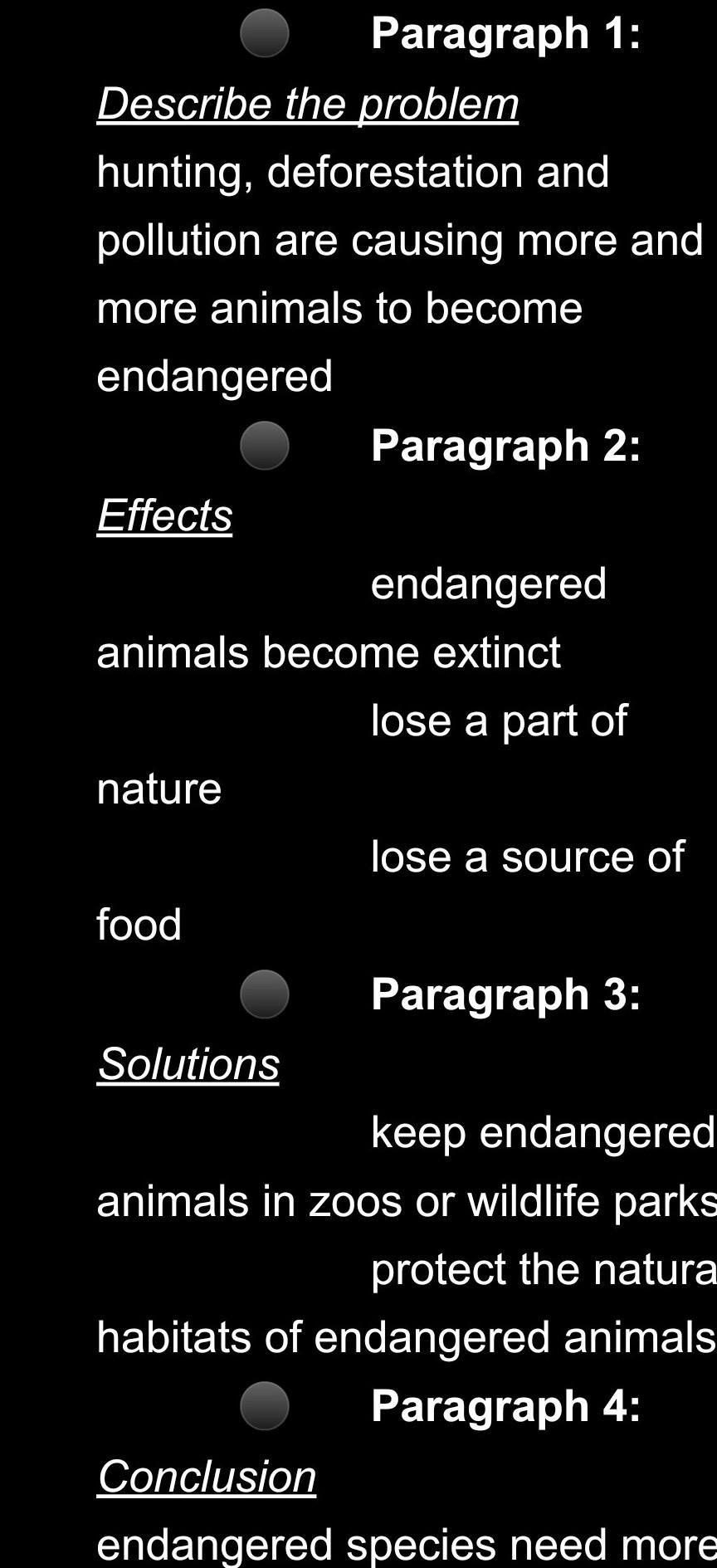 Write a short essay for your English teacher (60-80 words). In your essay discuss the problem of endangered species and offer solutions to it. Follow the plan below.
