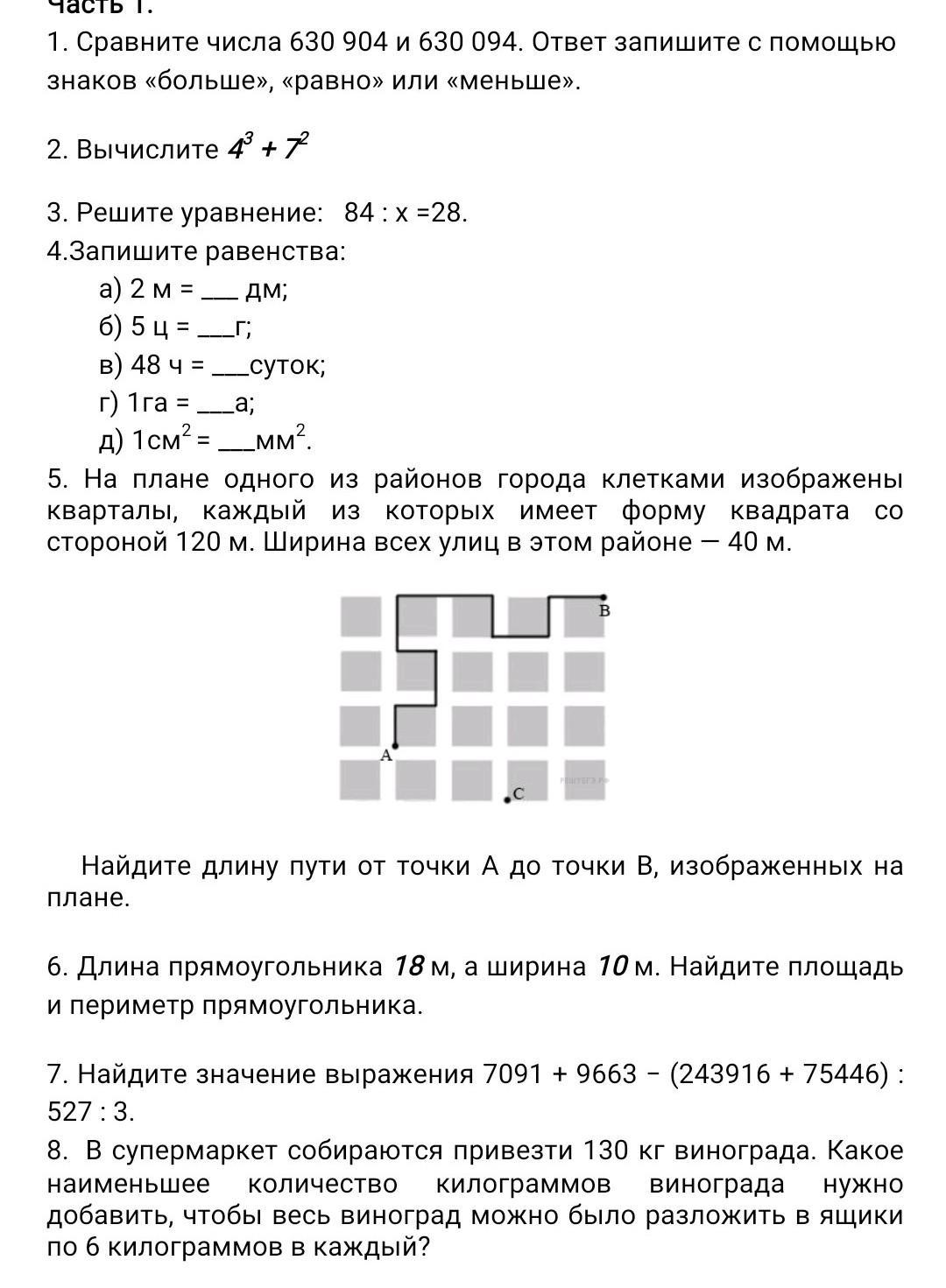 Ответ:630904>630094 2)4*4*4=64 7*7=49 64+49=113 3)84:х=28 х=84:58 х=3