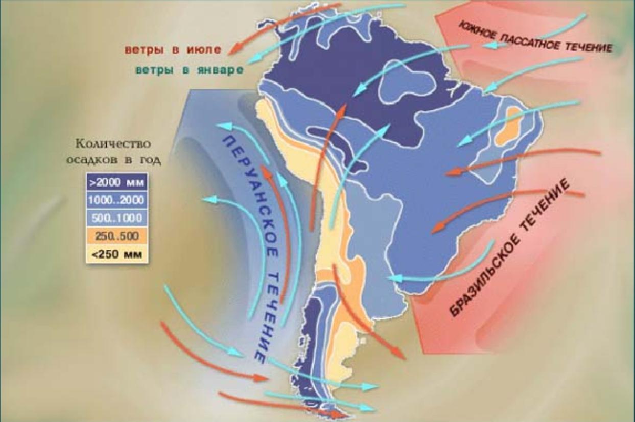 Изучите карту Южной Америки и определите какие воздушные массы формируют климат материка.
