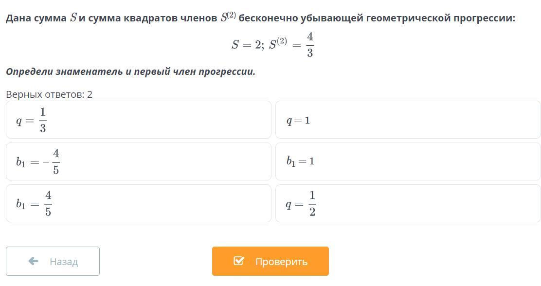 определите знаменатель и первый член прогрессии (варианты ответов на фото)