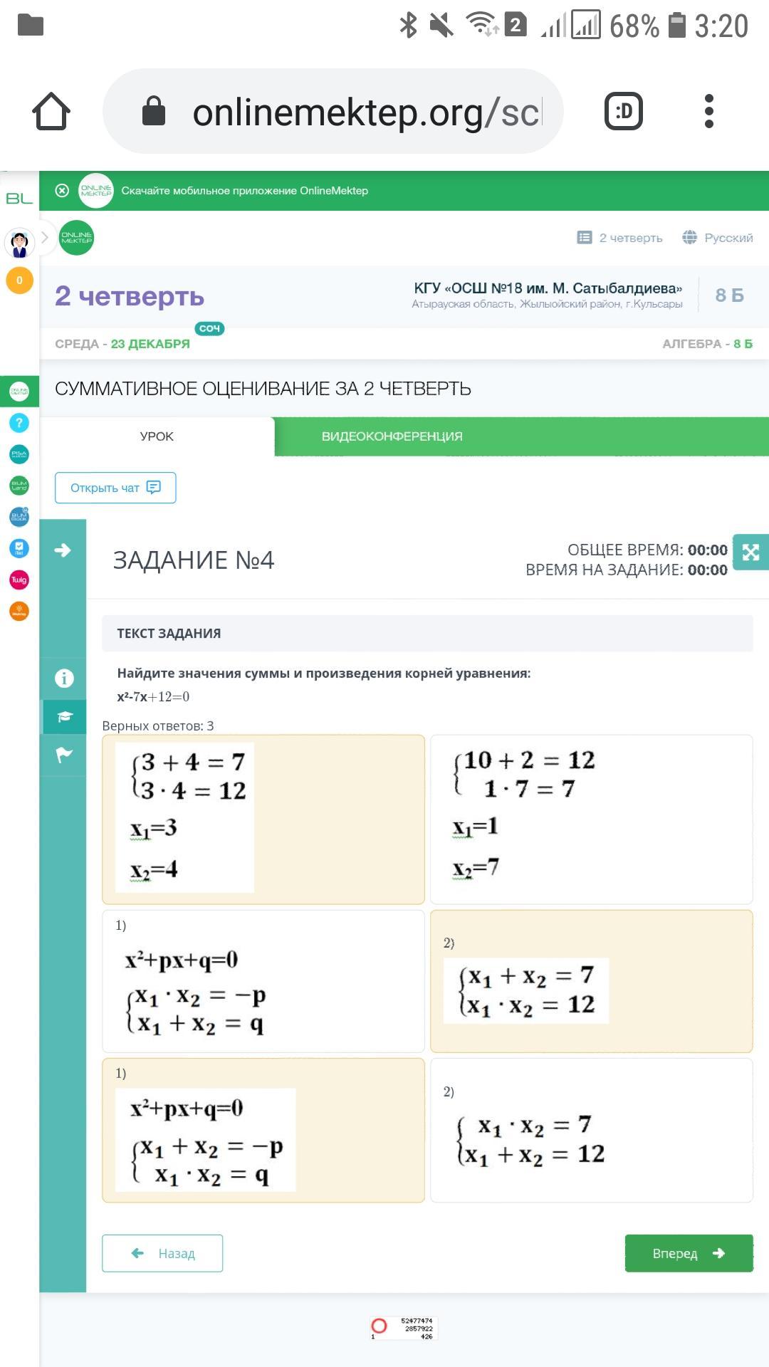 Ответ:тут решение,а также ответы в Онлайн Мектеп 100%%правильно