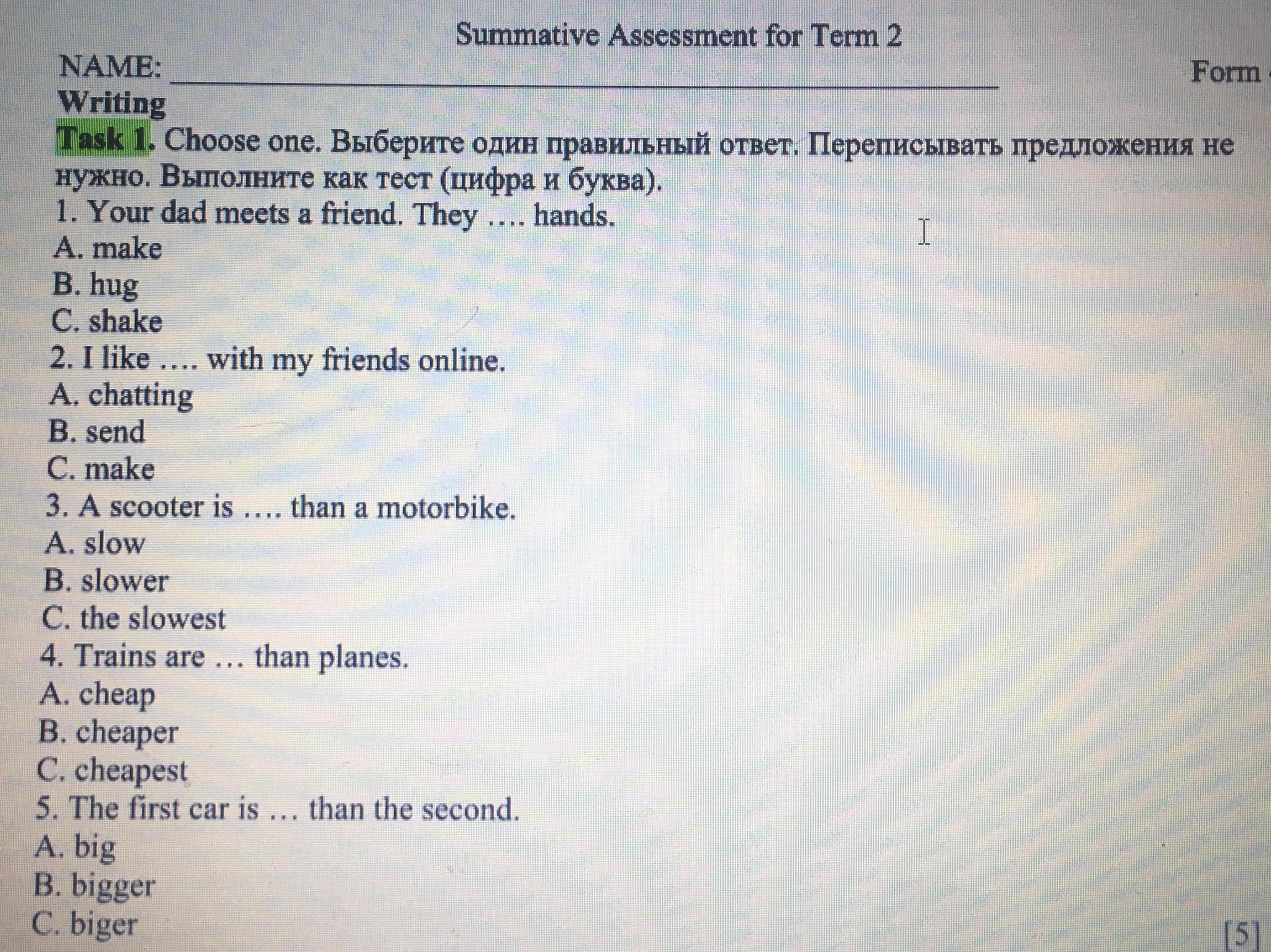 Відповідь: 1.c),2.a),3.B),4.B),5.B).Я не уверена, правильно это или нет.