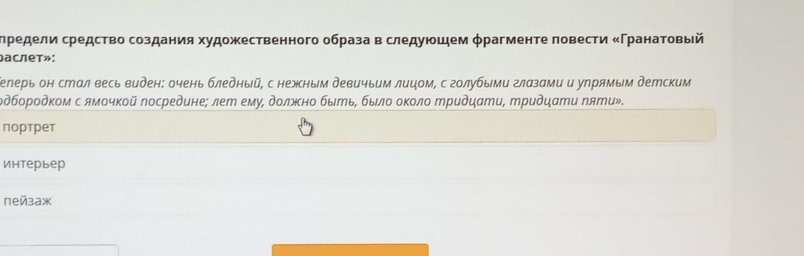 Определи средства создания художественного образа в следующем фрагменте повести Гранатовый браслет теперь стал весь виден очень бледный с нежным девичьим девичьим лицом с голубыми глазами и упрямым детским подростков с яблочком лет его должно быть плохо 30/35 портрет интерьер пейзаж