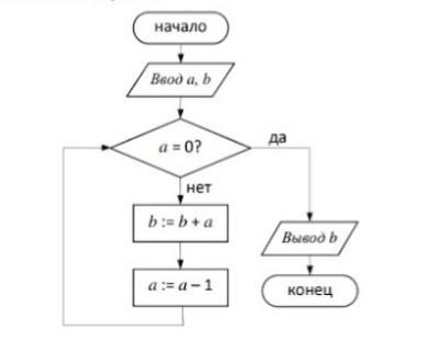 Дана блок-схема алгоритма. Требуется определить результат работы этого алгоритма при вводных значениях а=4 и b=0.