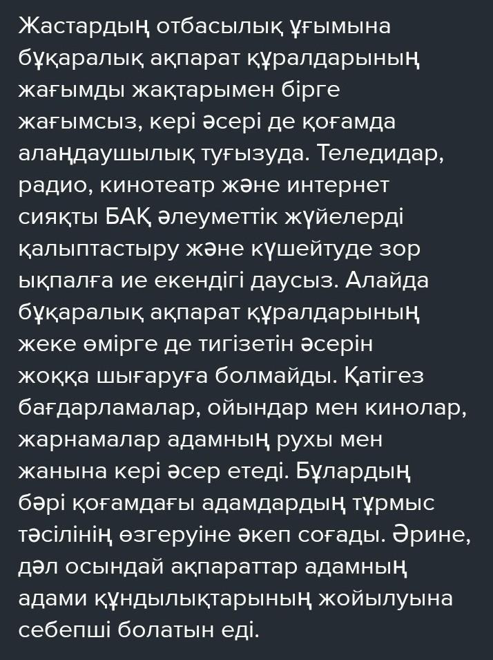 Жастардың отбасылық ұғымына бұқаралық ақпарат құралдарының жағымды жақтарымен бірге жағымсыз, кері әсері де қоғамда алаңдаушылық туғызуда. Теледидар, радио, кинотеатр және интернет сияқты БАҚ әлеуметтік жүйелерді қалыптастыру және күшейтуде зор ықпалға ие екендігі даусыз. Алайда бұқаралық ақпарат құралдарының жеке өмірге де тигізетін әсерін жоққа шығаруға болмайды. Қатігез бағдарламалар, ойындар мен кинолар, жарнамалар адамның рухы мен жанына кері әсер етеді. Бұлардың бәрі қоғамдағы адамдардың тұрмыс тәсілінің өзгеруіне әкеп соғады. Әрине, дәл осындай ақпараттар адамның адами құндылықтарының жойылуына себепші болады.
