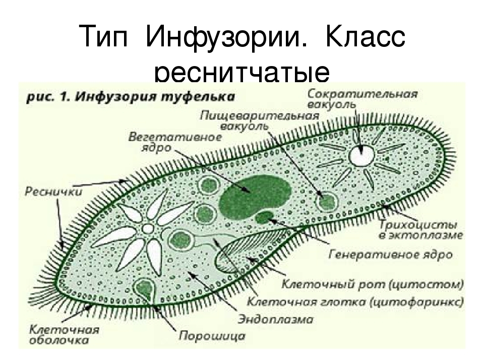 Все тело клетка покрыто ресничками. На одной стороне имеется рот в виде воронки, переходящий в глотку.