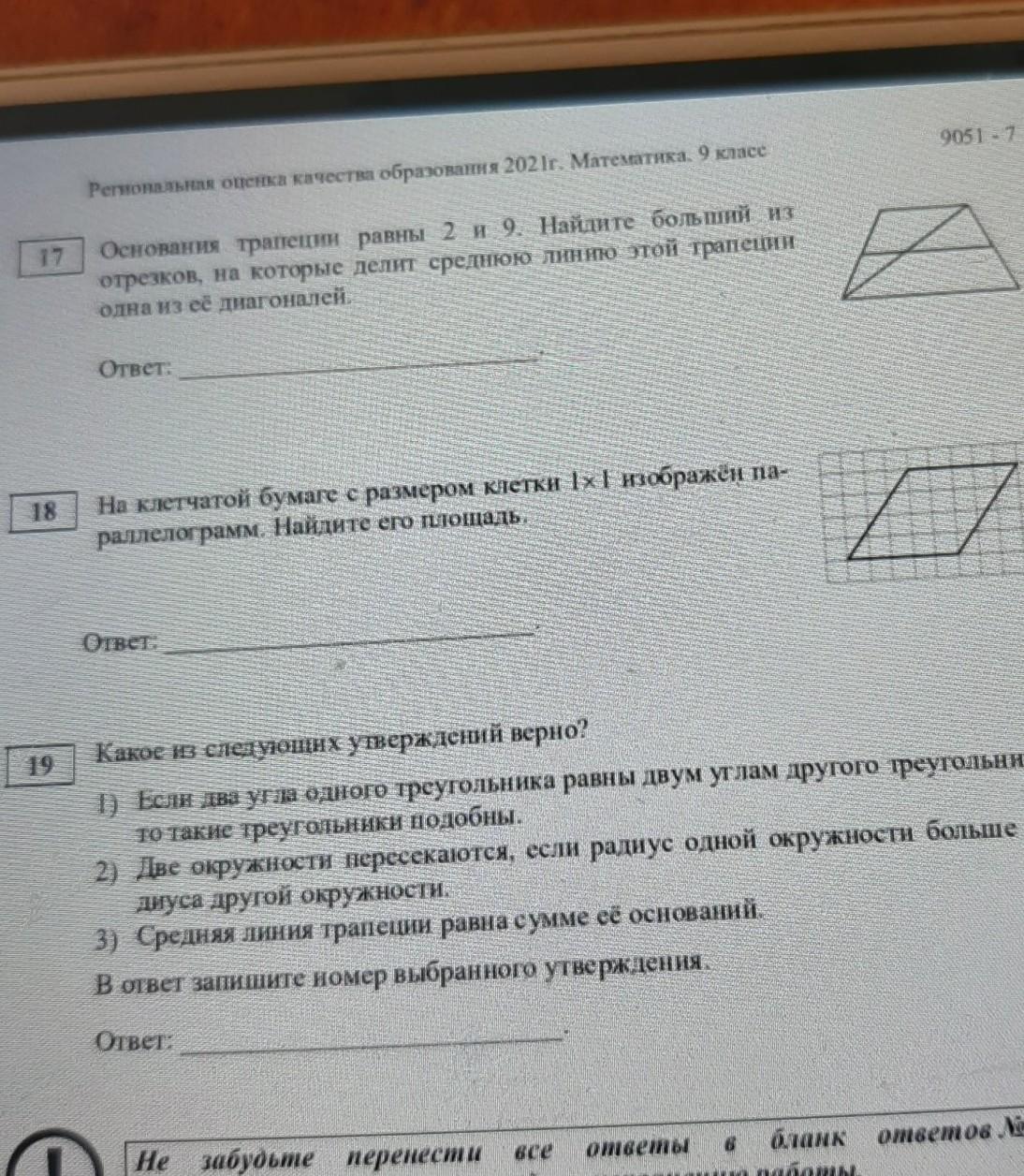 Больший из отрезков тоже является средней линией треугольника и равен .