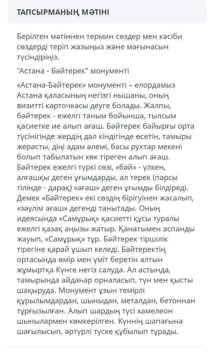 Термин сөздер- монумент,идея,шар,визитті карточкасы