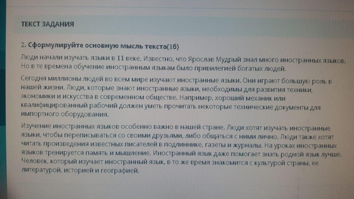 Основная мысль текста в том что каждому человеку важен иностранные языки в любом месте ты встретишь иностранца ты должен быть готовым на все!