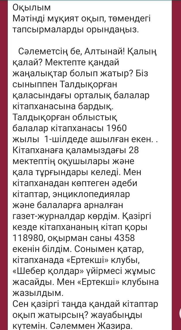 Мәтіннің негізгі тақырыбын анықта нужно по тексту ответеть на ответ прошу умоляю делаю с самого утра даю за ответ 50 баллов