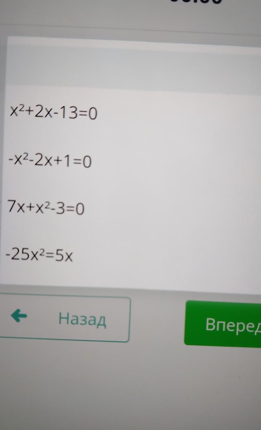 Определите какое из приведённых ниже уравнений является неполным квадратным уравнением
