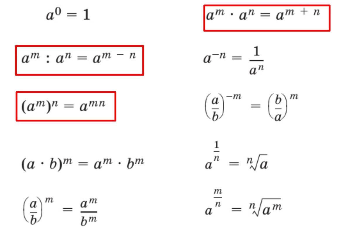 *На фотографии свойства степеней (красным выделены те, которые использовались при решении).