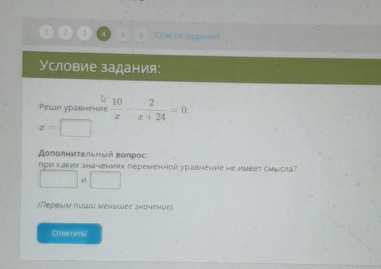 При каких значениях переменной уравнение не имеет смысла?
