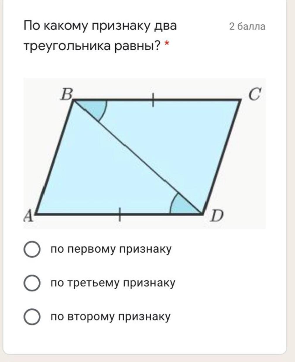 ∆ABD=∆BDC, по первому признаку. (Если две стороны и угол между ними одного треугольника, равны двум сторонам и углу между ними другого треугольника, то такие треугольники равны.)