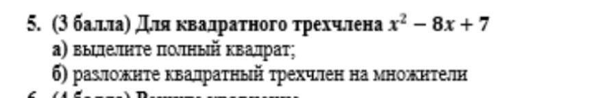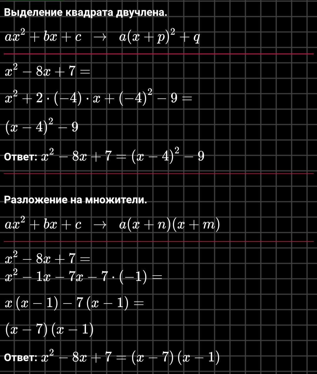 для квадратного трехчлена X квадрате минус 8 Икс плюс 7 выделить полный квадрат Разложите квадратный трехчлен на множители