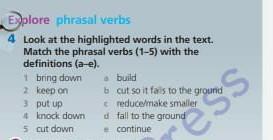 4.Look at the hinghlighted words in the text.Match the phrasal verds(1-5)with the defintions (a-e).
