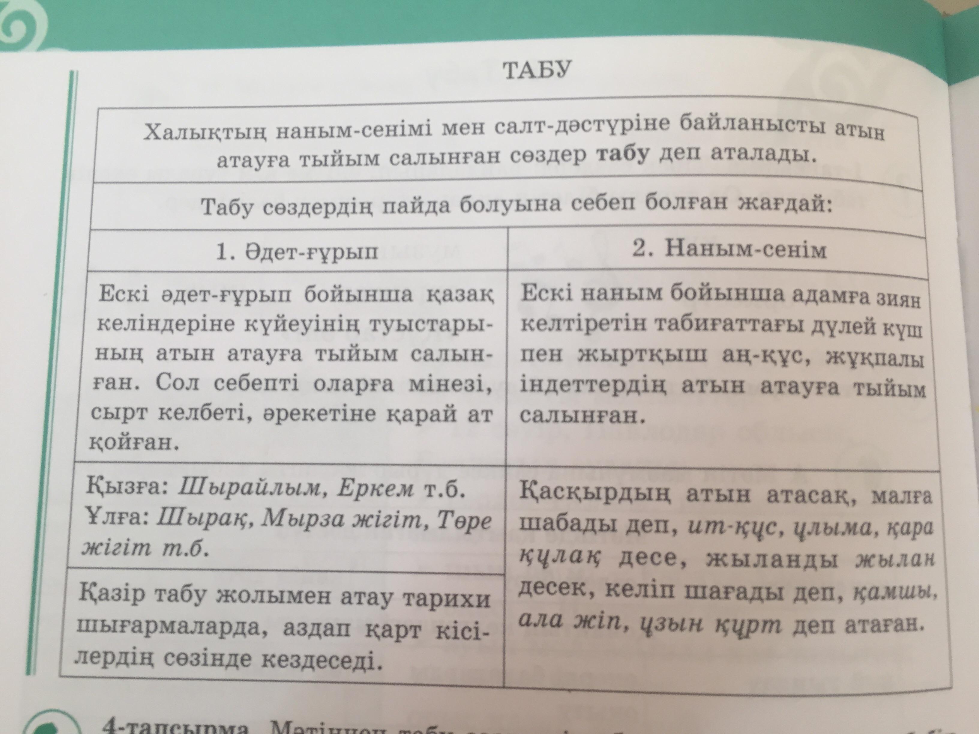 Табу создер-халықтың наным сеним мен салт дастурне байлаеысты атын айтуга тыйым салынган создер
