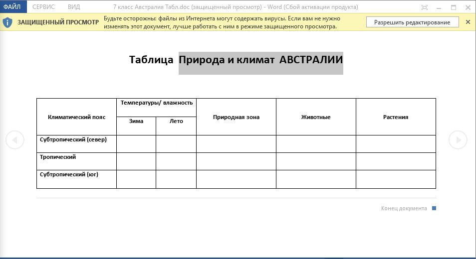 Австралия — самый сухой континент Земли, и одна из наиболее характерных черт его природы — широкое распространение пустынь, которые занимают обширные пространства и протягиваются почти на 2,5 тыс. км от берегов Индийского ок