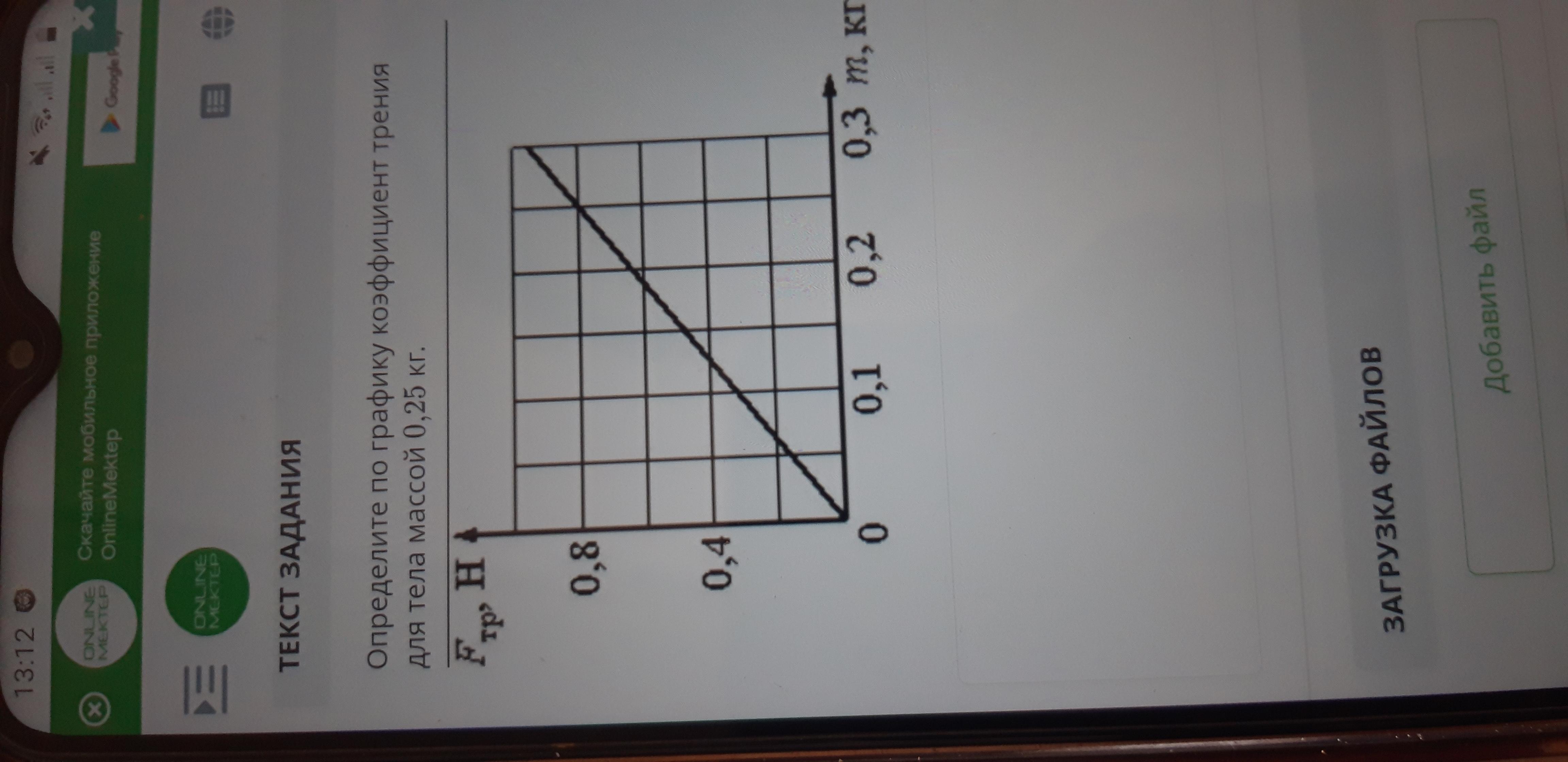 μ=0,8/(0,25*9,8 (реакция опоры))=0,8/2,45=0,3265