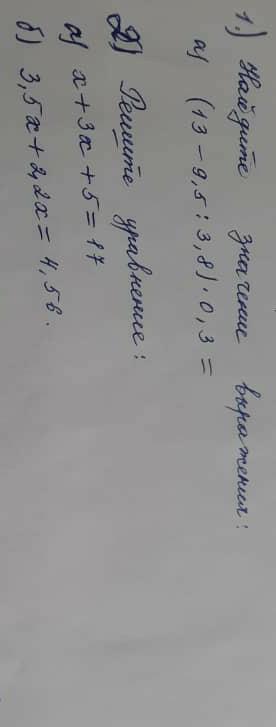 в первом сначала делишь 9,5 на 3,8, затем от 13 отнимаешь результат деления, и умножаешь это на 0,3